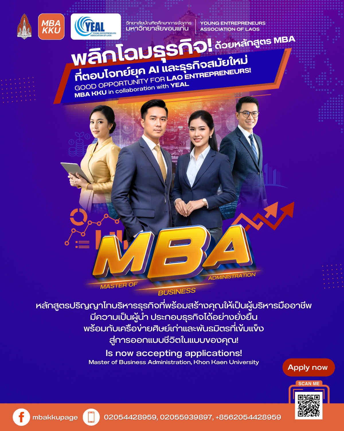 | ขอเชิญศิษย์เก่า ศิษย์ปัจจุบัน MBA KKU เข้าร่วมกิจกรรมสืบสานประเพณีไทย กิจกรรม “สรงน้ำพระ รดน้ำขอพรคณาจารย์” ลงประกาศใน ข่าวประชาสัมพันธ์เมื่อวันพุธที่ 8 เมษายน 2569 | |