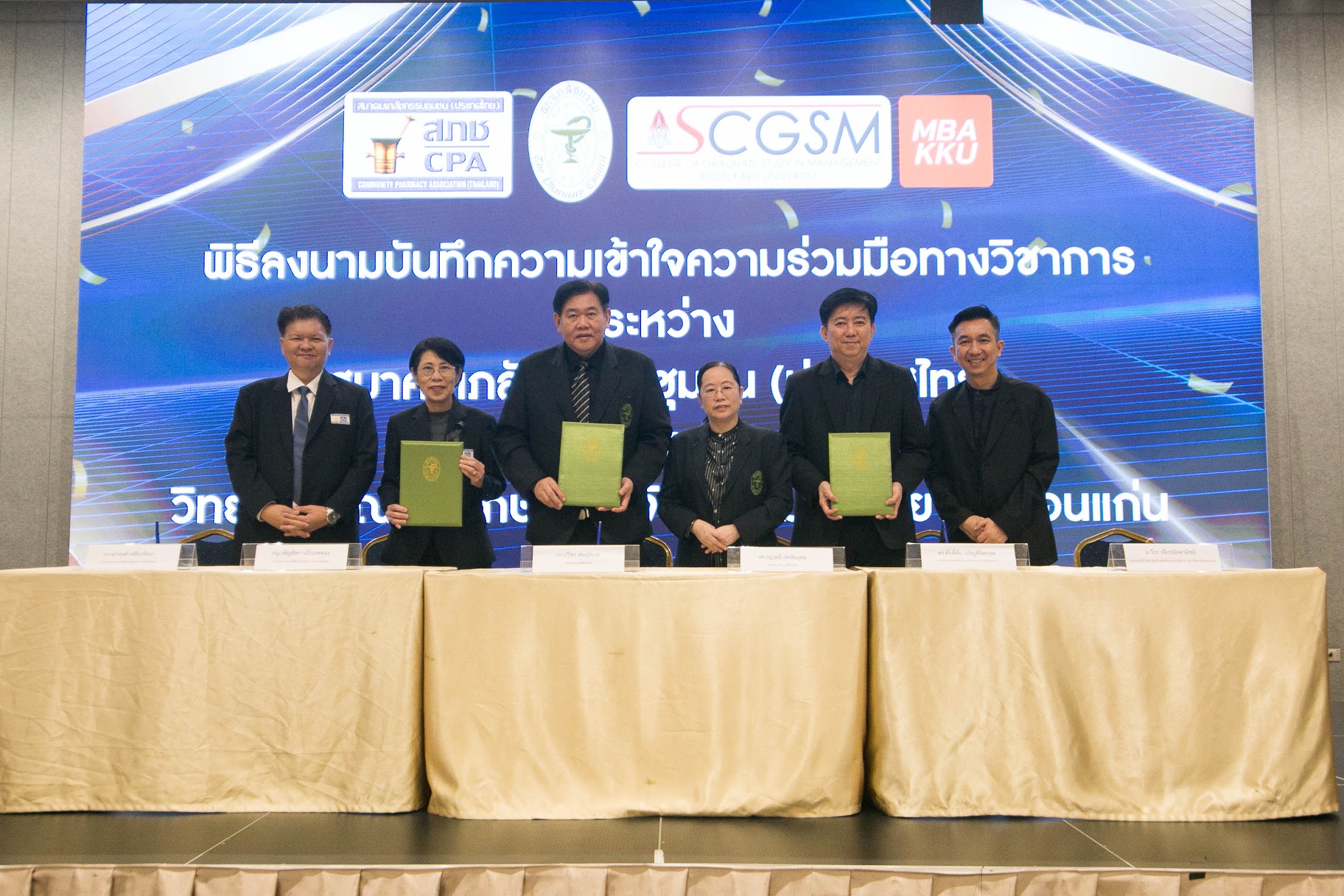 มหาวิทยาลัยขอนแก่น โดยวิทยาลัยบัณฑิตศึกษาการจัดการ (MBA KKU) ร่วมกับสมาคมเภสัชกรรมชุมชน (ประเทศไทย) และสภาเภสัชกรรม ลงนามบันทึกความร่วมมือเพื่อยกระดับองค์ความรู้ด้านการบริหารและการตลาดของร้านยาไทยในยุคดิจิทัล ภายในงาน “PHARMACY BRAND BUILDER 2025 – ฮีลใจให้ร้านยา โตด้วยกลยุทธ์และเทคโนโลยี (CPE 5.5)” จัดขึ้นเมื่อวันที่ 8 พฤศจิกายน 2568 ณ ห้องประชุมสิรินันทกิตต์ ชั้น 3 อาคารมหิดลาริเนตร กระทรวงสาธารณสุข