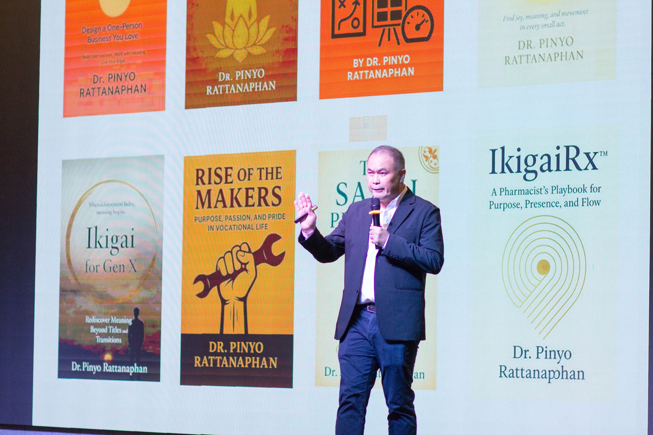 นำเสนอแนวทางการเติบโตผ่านหัวข้อ Ikigai สู่ผู้ประกอบการคุณภาพ การตลาดยุคใหม่สำหรับ Pharmapreneur การใช้ Pharma AI Assistant และเทคโนโลยีเพื่อความสำเร็จของร้านยา