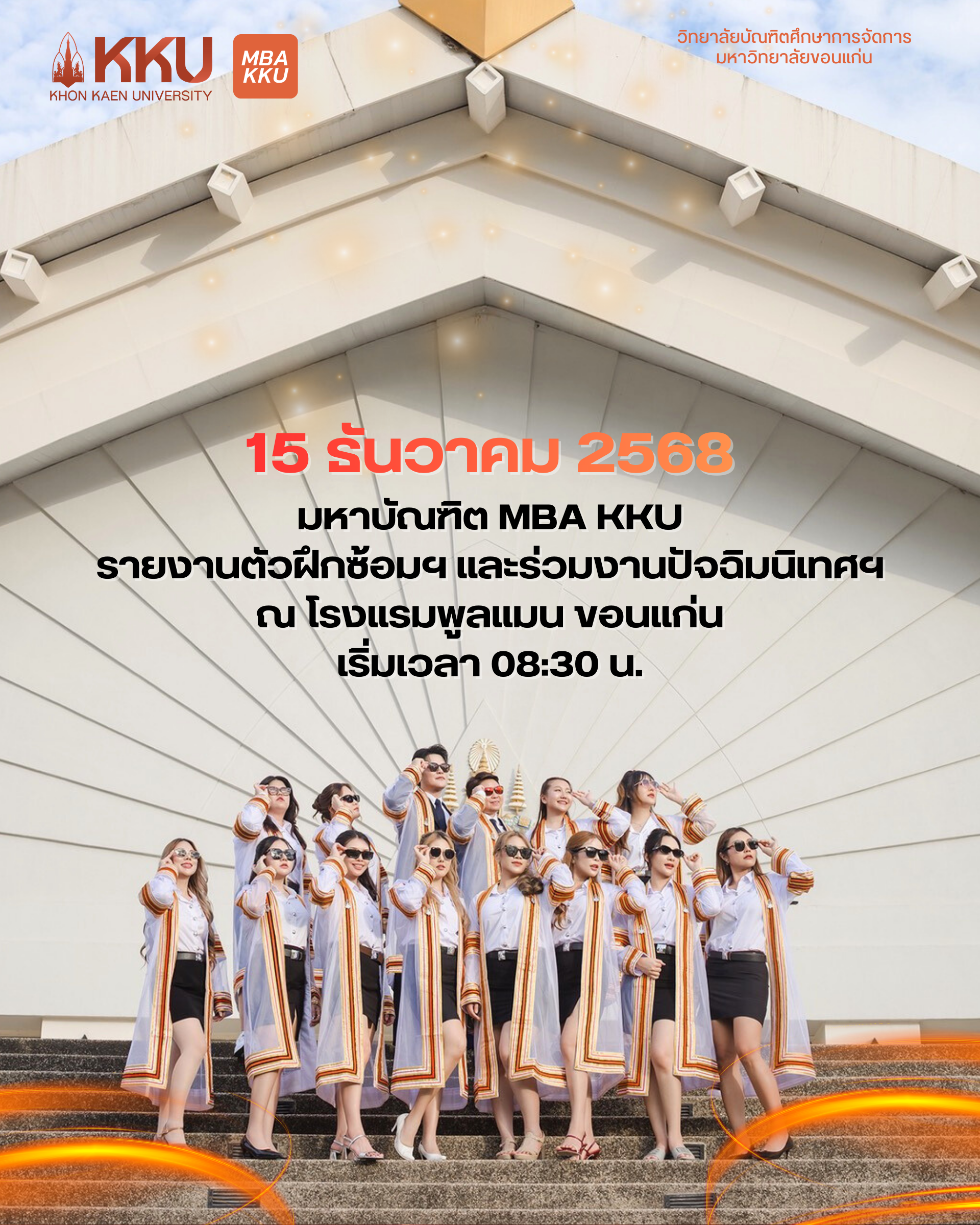 15 ธันวาคม 2568 มหาบัณฑิต MBA KKU รายงานตัวฝึกซ้อมฯ และร่วมงานปัจฉิมนิเทศฯ ณ โรงแรมพูลแมน ขอนแก่น