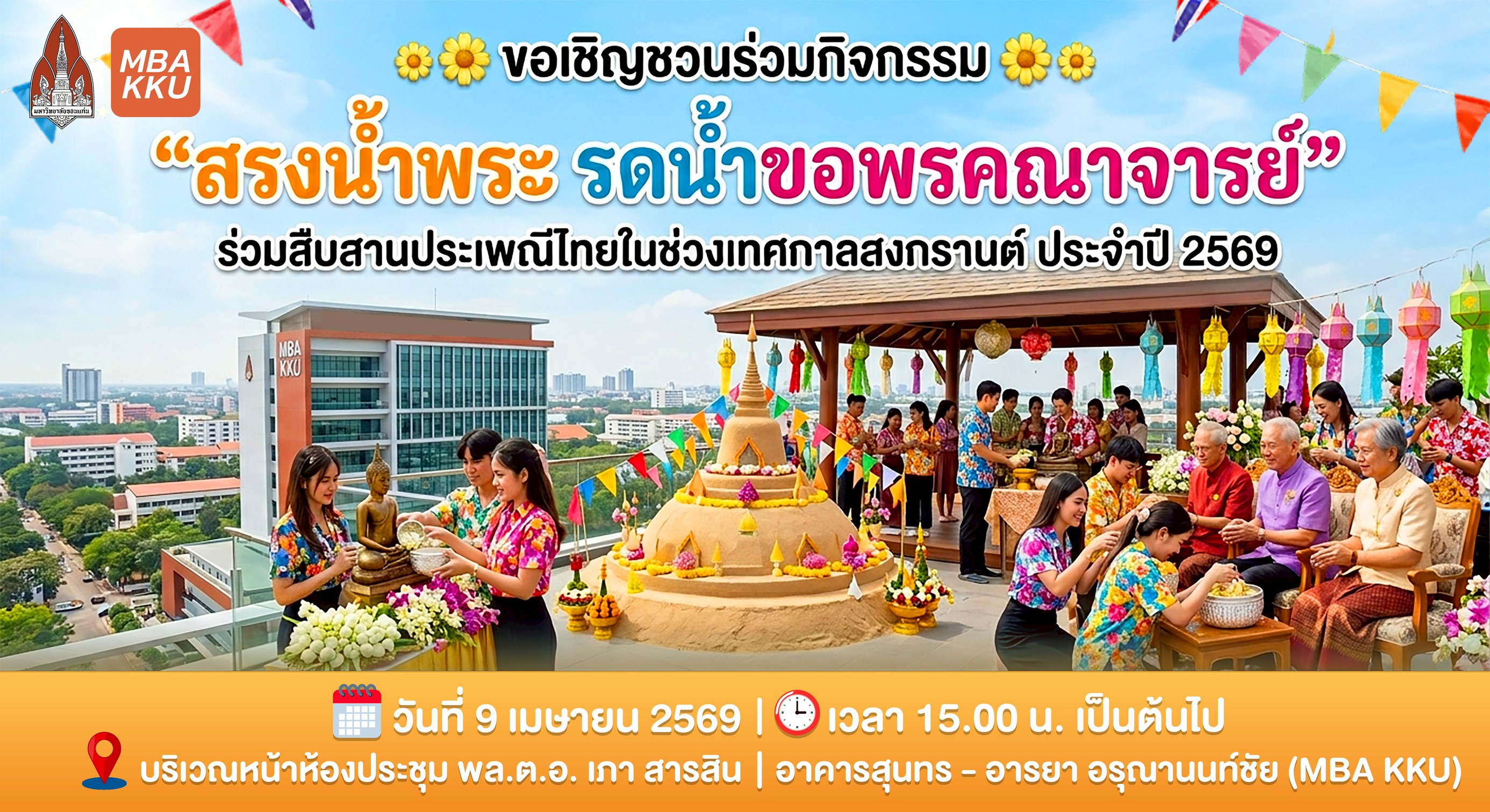 ขอเชิญศิษย์เก่า ศิษย์ปัจจุบัน MBA KKU เข้าร่วมกิจกรรมสืบสานประเพณีไทย กิจกรรม “สรงน้ำพระ รดน้ำขอพรคณาจารย์”