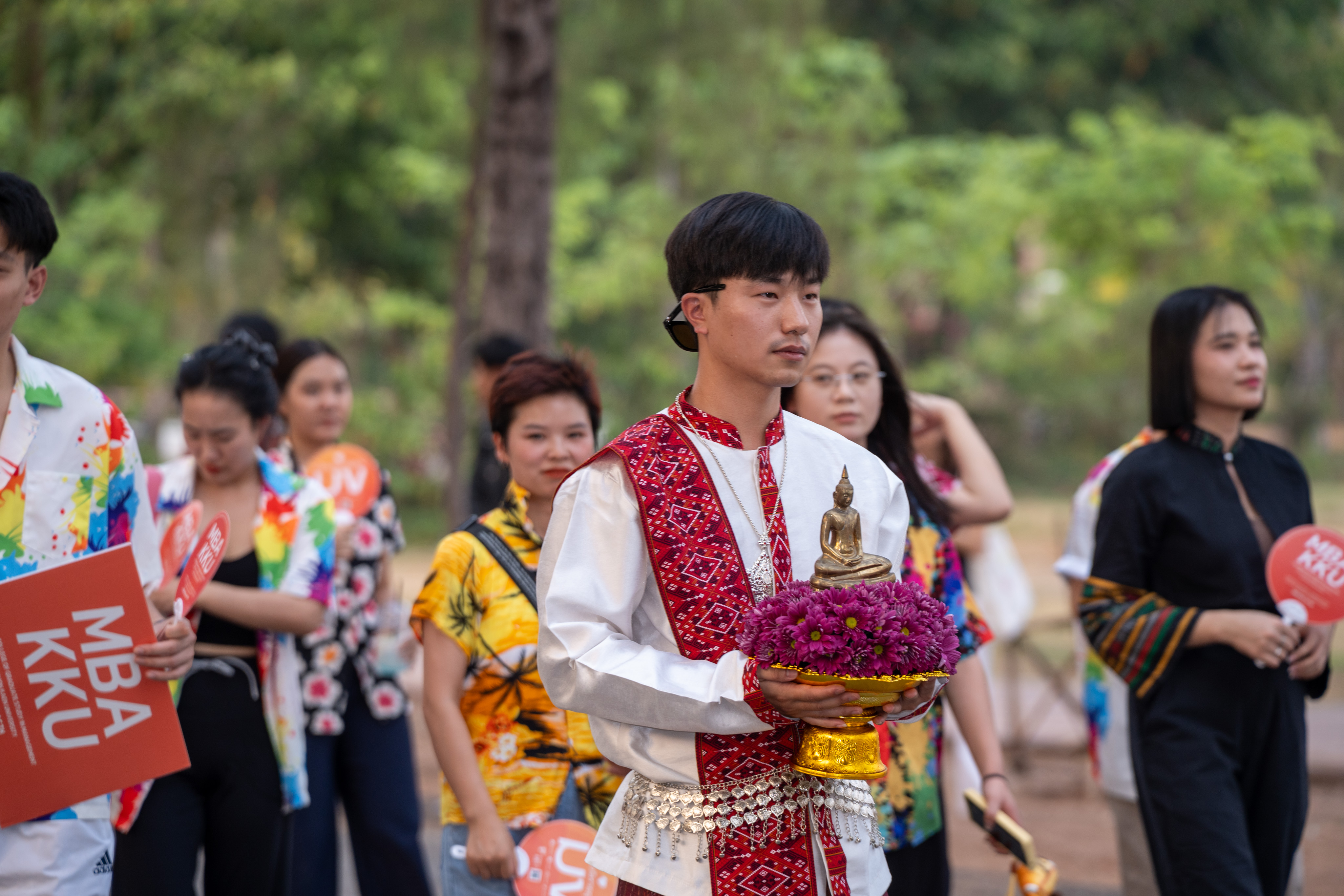 On Wednesday, April 8, 2026, staff and students from the English-Chinese Program, MBA KKU took part in the “Fifth-Month Merit Making, Buddha Worship Parade, and Paying Respect to Elders 2026” at Khon Kaen University. The event was held to preserve and continue the Isan cultural tradition of Heet 12 Khong 14.